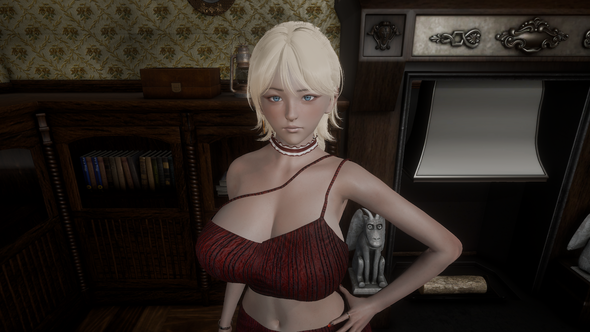 Her name is Sara — a beautiful blonde woman, alone, clearly unsettled by the place but unable to leave.